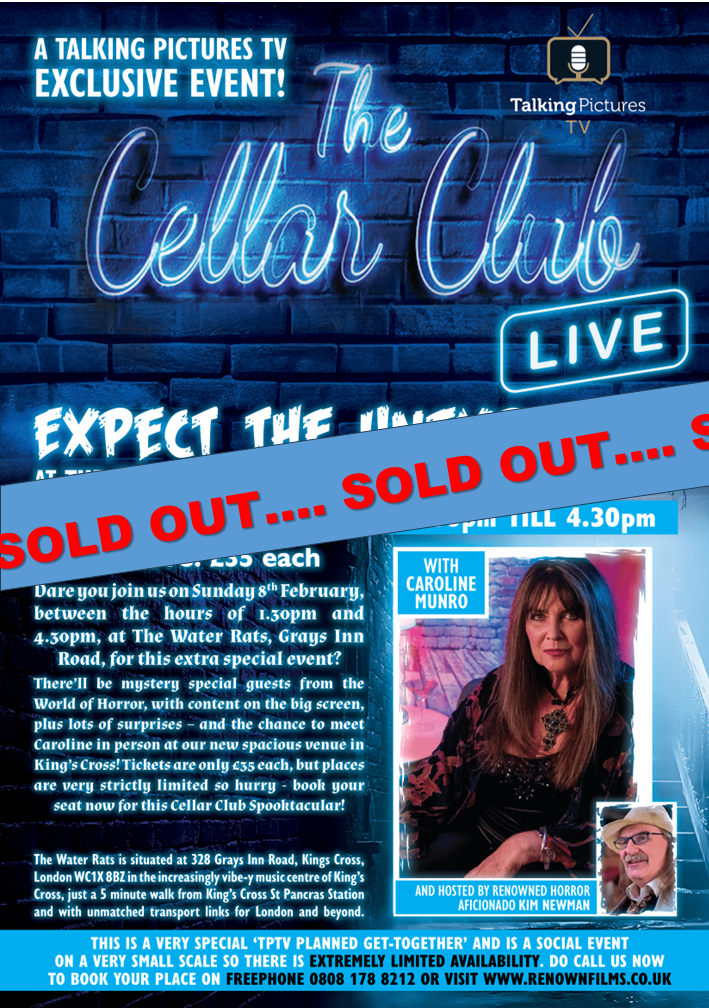 There’ll be mystery special guests from the World of Horror, with content on the big screen, plus lots of surprises – and the chance to meet Caroline in person at our new spacious venue in King’s Cross! Tickets are only £35 each, but places are very strictly limited so hurry – book your seat now for this Cellar Club Spooktacular!