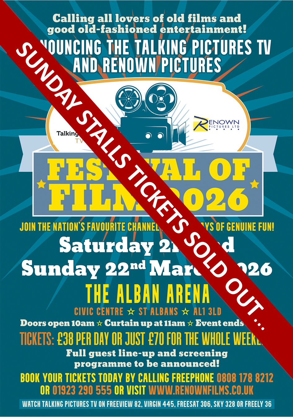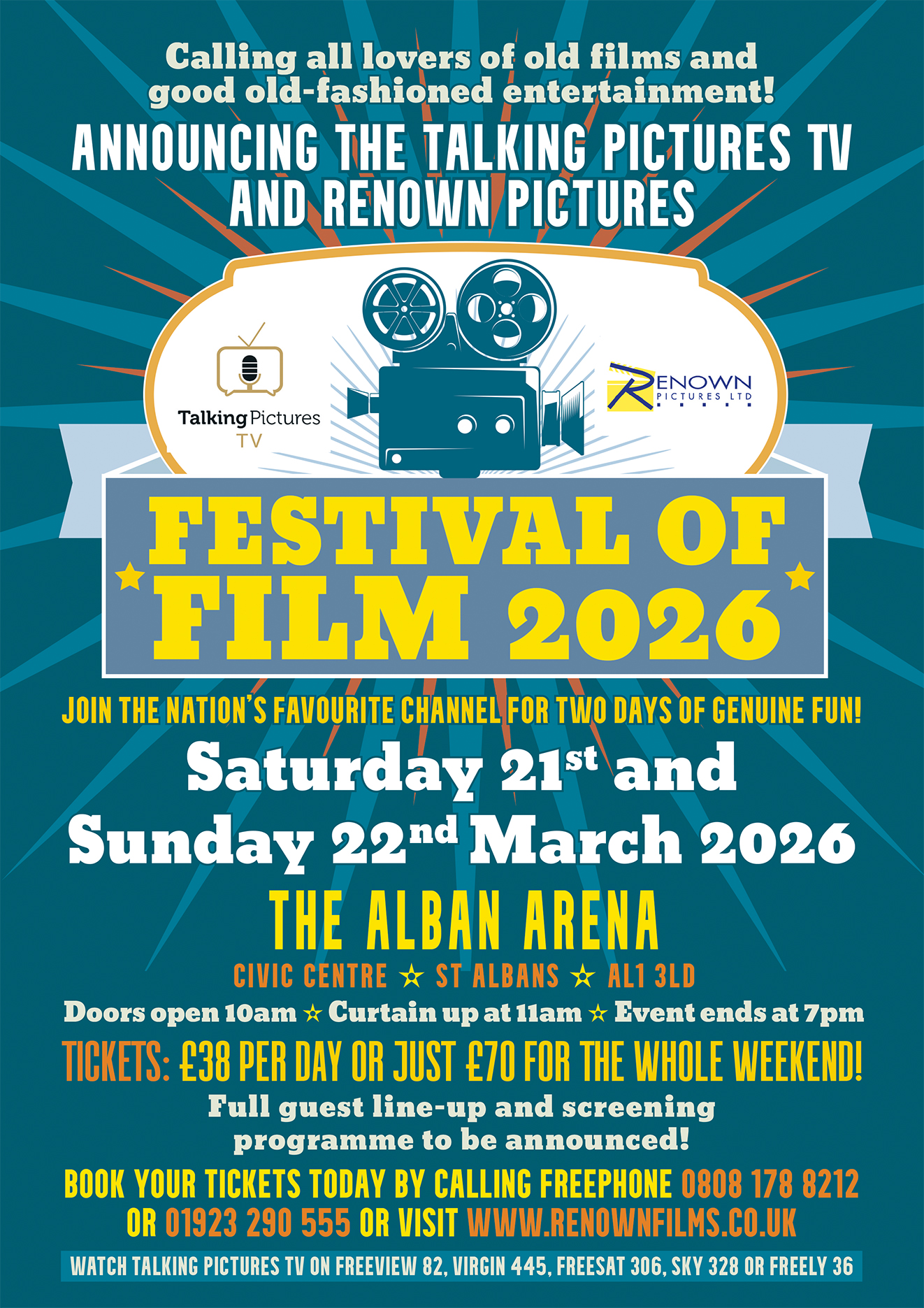 The Talking Pictures TV and Renown Pictures Festival Of Film at The Alban Arena, St Albans – Weekend Ticket For Saturday 21st & Sunday 22nd March 2026 *STALLS SEATING DOWNSTAIRS*
